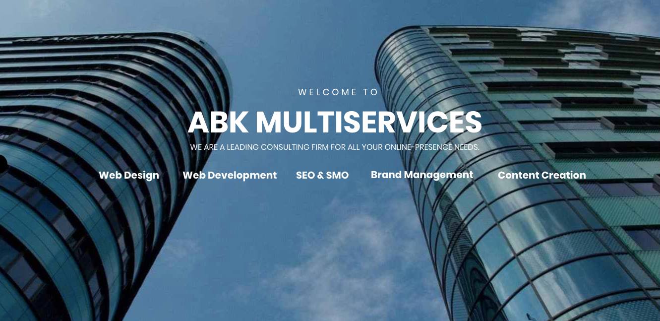 Abk Multiservices is a one-stop web & mobile-app solution company. We are here to handle all your web application, SEO, SMO as well as mobile app development requirement. We work with the latest technologies and resources to ensure the best outputs and blazing fast speeds. Our team promises a quick turn-around time to ensure that your business ideas do not have to wait.
